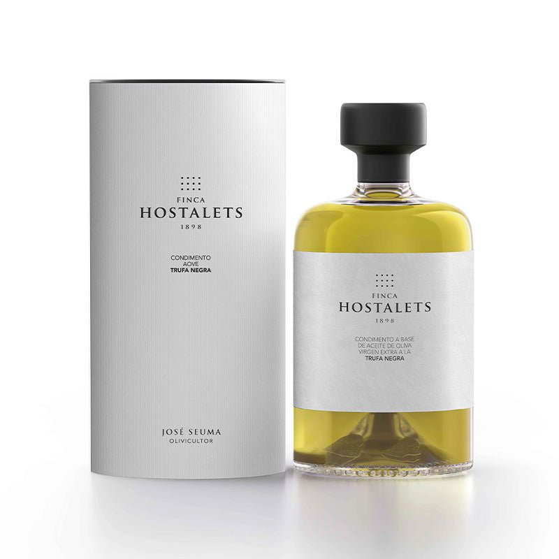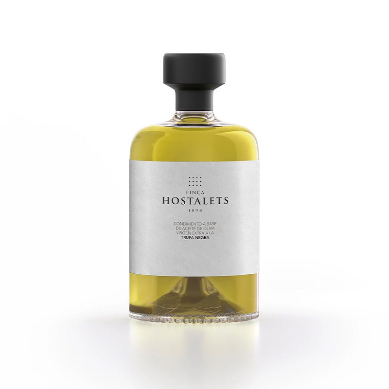 Black truffle (Tuber melanosporum), known as the Périgord truffle, is harvested in winter with dogs trained for their keen sense of smell. Its fragrant, earthy profile makes it an exceptional seasoning. Finca Hostalets’ base oil provides a silky texture and balance, preserving and carrying the truffle’s character with great definition.